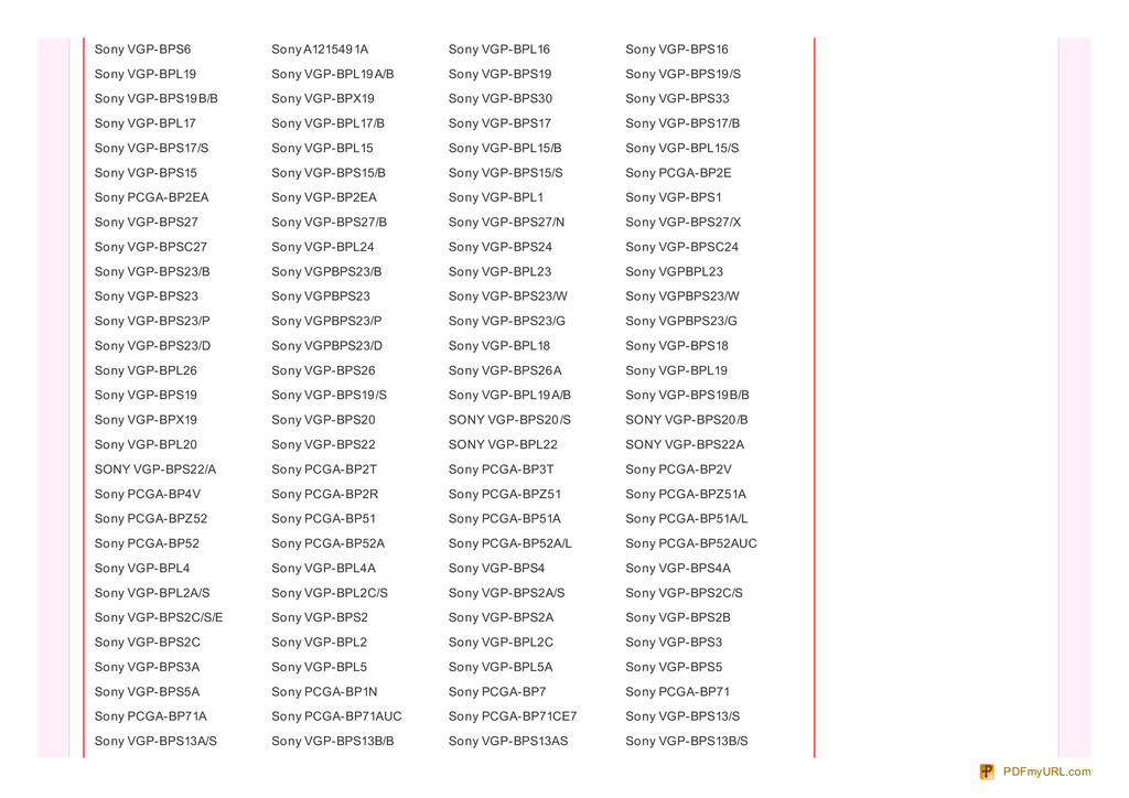 Sony VGP-BPL19A/B Sony VGP-BPS19 Sony VGP-BPS19/S Sony VGP-BPS19B/B Sony VGP-BPX19 Sony VGP-BPS30 Sony VGP-BPS33 Sony VGP-BPL17 Sony VGP-BPL17/B Sony VGP-BPS17 Sony VGP-BPS17/B Sony VGP-BPS17/S Sony VGP-BPL15 Sony VGP-BPL15/B Sony VGP-BPL15/S Sony VGP-BPS15 Sony VGP-BPS15/B Sony VGP-BPS15/S Sony PCGA-BP2E Sony PCGA-BP2EA Sony VGP-BP2EA Sony VGP-BPL1 Sony VGP-BPS1 Sony VGP-BPS27 Sony VGP-BPS27/B Sony VGP-BPS27/N Sony VGP-BPS27/X Sony VGP-BPSC27 Sony VGP-BPL24 Sony VGP-BPS24 Sony VGP-BPSC24 Sony VGP-BPS23/B Sony VGPBPS23/B Sony VGP-BPL23 Sony VGPBPL23 Sony VGP-BPS23 Sony VGPBPS23 Sony VGP-BPS23/W Sony VGPBPS23/W Sony VGP-BPS23/P Sony VGPBPS23/P Sony VGP-BPS23/G Sony VGPBPS23/G Sony VGP-BPS23/D Sony VGPBPS23/D Sony VGP-BPL18 Sony VGP-BPS18 Sony VGP-BPL26 Sony VGP-BPS26 Sony VGP-BPS26A Sony VGP-BPL19 Sony VGP-BPS19 Sony VGP-BPS19/S Sony VGP-BPL19A/B Sony VGP-BPS19B/B Sony VGP-BPX19 Sony VGP-BPS20 SONY VGP-BPS20/S SONY VGP-BPS20/B Sony VGP-BPL20 Sony VGP-BPS22 SONY VGP-BPL22 SONY VGP-BPS22A SONY VGP-BPS22/A Sony PCGA-BP2T Sony PCGA-BP3T Sony PCGA-BP2V Sony PCGA-BP4V Sony PCGA-BP2R Sony PCGA-BPZ51 Sony PCGA-BPZ51A Sony PCGA-BPZ52 Sony PCGA-BP51 Sony PCGA-BP51A Sony PCGA-BP51A/L Sony PCGA-BP52 Sony PCGA-BP52A Sony PCGA-BP52A/L Sony PCGA-BP52AUC Sony VGP-BPL4 Sony VGP-BPL4A Sony VGP-BPS4 Sony VGP-BPS4A Sony VGP-BPL2A/S Sony VGP-BPL2C/S Sony VGP-BPS2A/S Sony VGP-BPS2C/S Sony VGP-BPS2C/S/E Sony VGP-BPS2 Sony VGP-BPS2A Sony VGP-BPS2B Sony VGP-BPS2C Sony VGP-BPL2 Sony VGP-BPL2C Sony VGP-BPS3 Sony VGP-BPS3A Sony VGP-BPL5 Sony VGP-BPL5A Sony VGP-BPS5 Sony VGP-BPS5A Sony PCGA-BP1N Sony PCGA-BP7 Sony PCGA-BP71 Sony PCGA-BP71A Sony PCGA-BP71AUC Sony PCGA-BP71CE7 Sony VGP-BPS13/S Sony VGP-BPS13A/S Sony VGP-BPS13B/B Sony VGP-BPS13AS Sony VGP-BPS13B/S PDFmyURL.com
