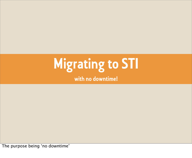 Steps include: - Adding a type column - Renaming the table - Creating the STI