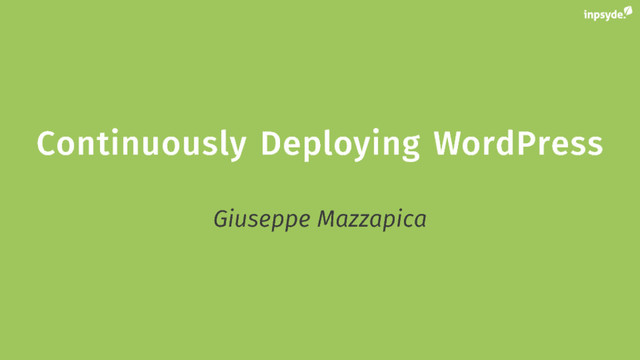 WooCommerce Expert @gmazzap github.com/gmazzap https://gmazzap.me PHP developer since 2005, first met WordPress in 2006. Moderator at wordpress.stackexchange.com Since 2016 WordPress Engineer at: Giuseppe Mazzapica Continuously Deploying WordPress Continuously Deploying WordPress