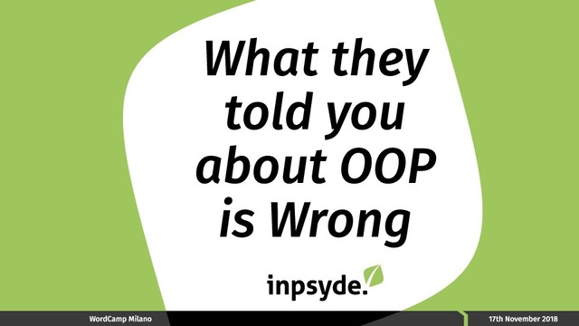 Alan Kay's invented the term "object oriented" in late 1960's, but the idea he had about that term, is quite different from what people nowadays commonly refer to as "OOP". The presentation does a small trip in OOP history to find out why, and advocating a "back to the origin" for a better OOP programming.