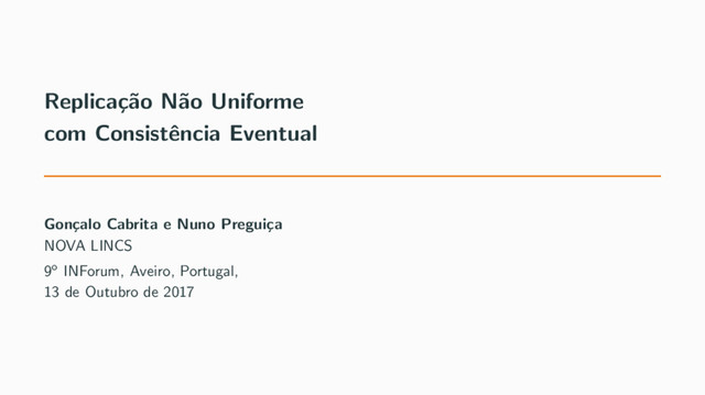 cos a encontrarem novas formas de escalar • Muitos servi¸ cos guardam os seus dados em key-value stores geo-replicadas • Estas base de dados sacrificam a consistˆ encia dos dados em troca de alta-disponibilidade 1