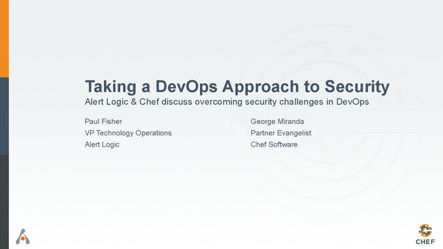 business benefits such as faster yet safer feature release cadence, increased application stability, and rapid response to shifting market conditions. However, security and compliance monitoring tools have not kept up and often represent the single largest remaining hurdle to Continuous Delivery. Topics covered in this session: • How DevOps Improves your Security Posture • Overcoming Challenges in DevOps Environments