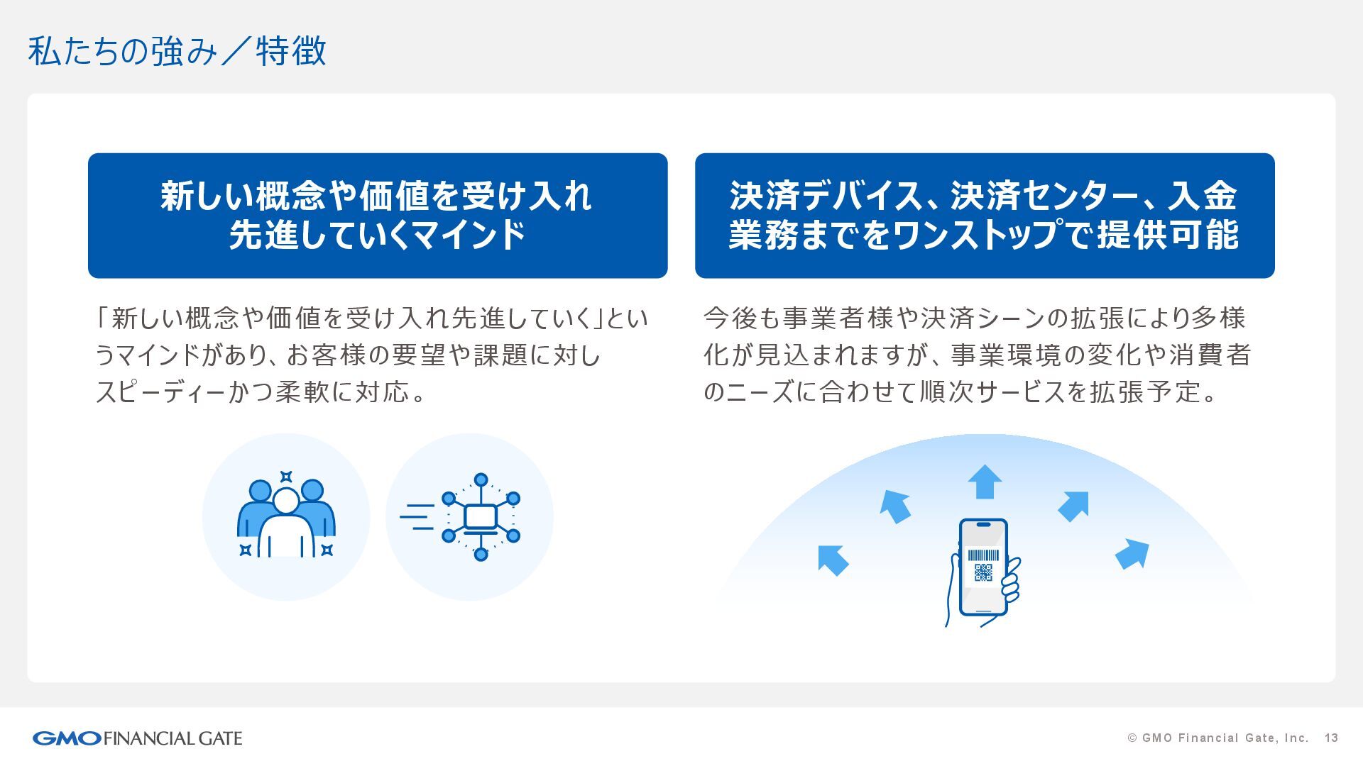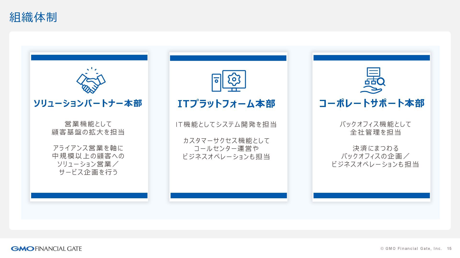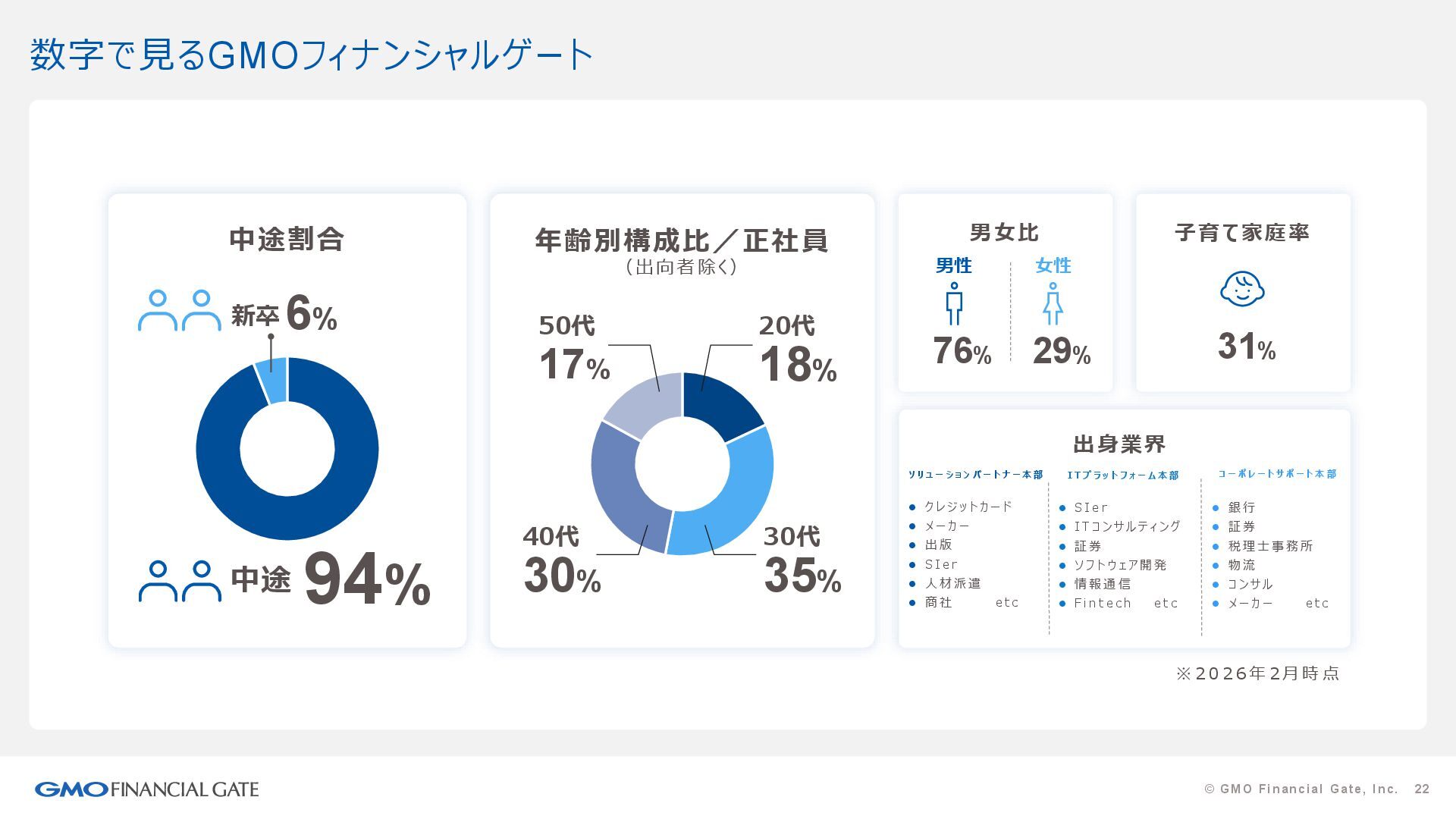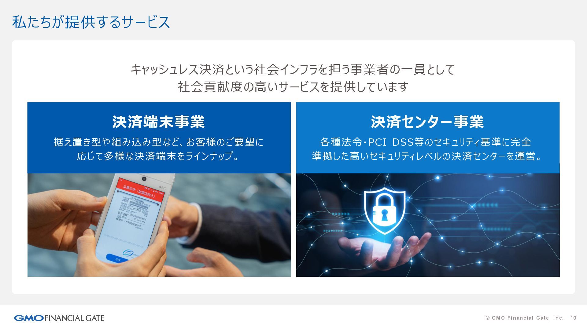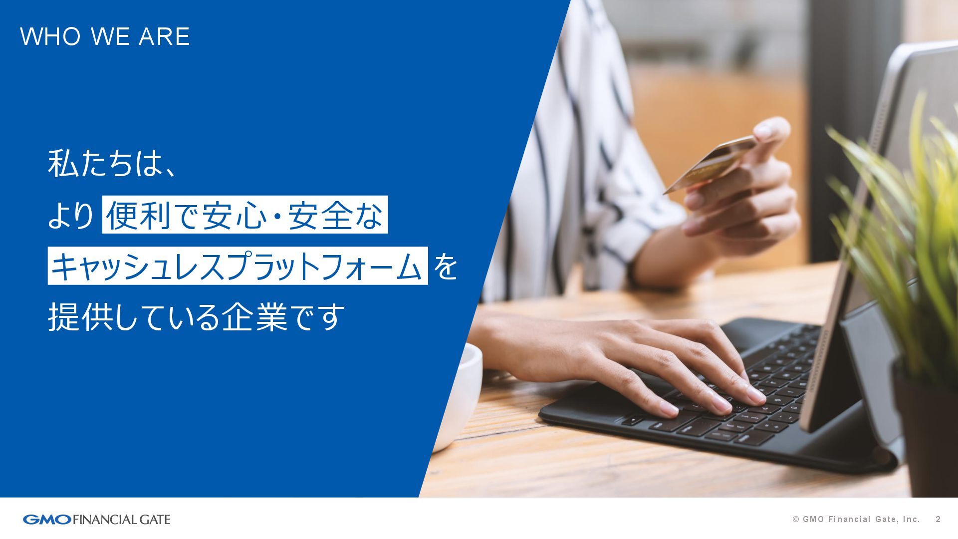 M O フ ィ ナ ン シ ャ ル ゲ ー ト 株 式 会 社 ( 英 語 表 記 : G M O F i n a n c i a l G a t e , I n c . ) 設 立 日 1 9 9 9 年 9 月 7 日 所 在 地 東 京 都 渋 谷 区 道 玄 坂 1 - 1 4 - 6 ヒ ュ ー マ ッ ク ス 渋 谷 ビ ル ( 受 付 7 階 ) 代 表 者 代 表 取 締 役 社 長 杉 山 憲 太 郎 資 本 金 1 6 億 3 8 6 8 万 円 ( 2 0 2 4 年 2 月 末 現 在 ) 事 業 内 容 ク レ ジ ッ ト カ ー ド 、 デ ビ ッ ト カ ー ド 、 電 子 マ ネ ー 等 の キ ャ ッ シ ュ レ ス 決 済 イ ン フ ラ 提 供 事 業 グ ル ー プ 会 社 G M O カ ー ド シ ス テ ム 株 式 会 社 、 G M O デ ー タ 株 式 会 社 主 要 株 主 G M O ペ イ メ ン ト ゲ ー ト ウ ェ イ 株 式 会 社 会社概要 5