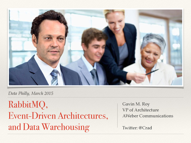 deployed off 6 coastlines ❖ RabbitMQ is the centerpiece of their Integrated Observatory Network ❖ Data is made available through “virtual observatories” in CSV and MATLAB formats For more information visit http://goo.gl/F48Ei