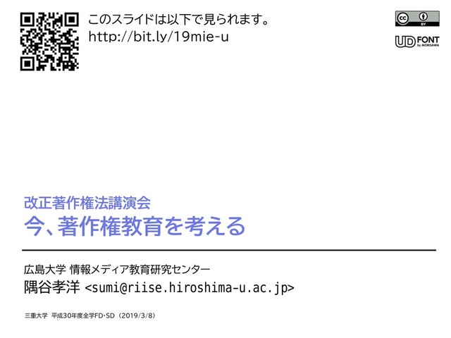 平成30年度三重大学全学FD・SD 改正著作権法講演会「今、著作権教育を考える」 2019年3月8日
