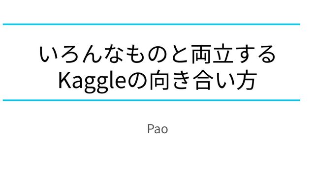 いろんなものと両⽴する Kaggleの向き合い⽅ Pao