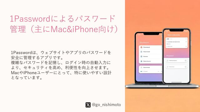 iCloudキーチェーン • 1Passwordなどのパスワード管理ツール サーバー側のセッション管理 サイトに再訪問した際に、ログイン画面を表示せずに自動的にログ イン状態になる仕組みです。これは主に以下の技術で実現されてい ます • Cookie • サーバーから発行されたセッション情報をブラウザが保存 • セッショントークン • サーバー側でユーザーの認証状態を管理 • Remember Me機能 • 長期間の認証情報を維持するための仕組み その他のブラウザでの認証の仕組み ソーシャルログインの仕組み SNS認証による効率化 ユーザーが既存のSNSアカウントを使用してサードパー ティのアプリケーションやウェブサイトにログインでき るようにする認証方法です。 OAuth 2.0やOpenID Connectなどの基盤となるプロトコ ルにより、安全な認証とデータ共有が可能になります。 SNS認証の注意点 プライバシーに関する懸念(意図しないデータの共 有)、セキュリティリスク(ソーシャルメディアアカ ウントが侵害された場合の単一障害点)などの欠点な どには注意しましょう。