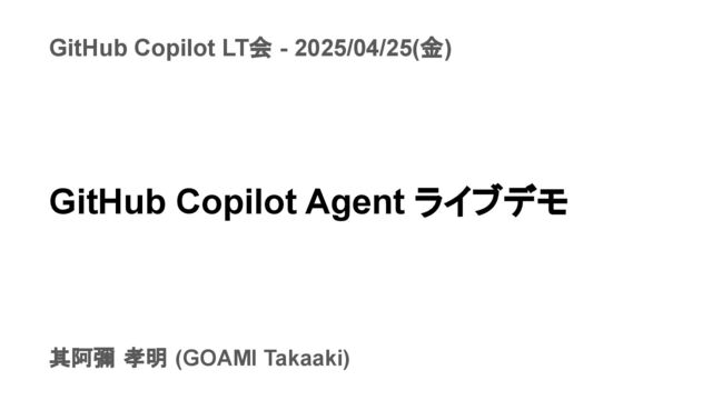 其阿彌 孝明 (GOAMI Takaaki) GitHub Copilot Agent ライブデモ GitHub Copilot