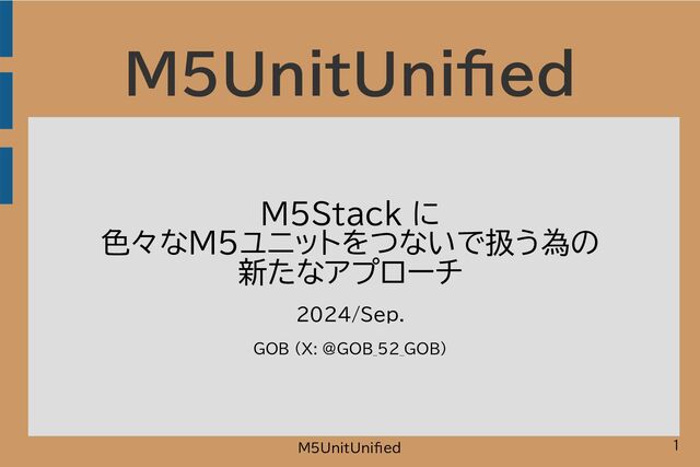 1 M5UnitUnifed M5UnitUnifed M5Stack に 色々なM5ユニットをつないで扱う為の 新たなアプローチ 2024/Sep. GOB (X: