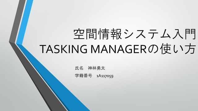 空間情報システム入門 TASKING MANAGERの使い方 氏名 神林勇太 学籍番号 1A117059