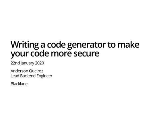 In this talk, I'll walk through how to write a code generator, using the tooling available in Go. Our code generator will aim to generate code to help us to keep sensitive information safe.