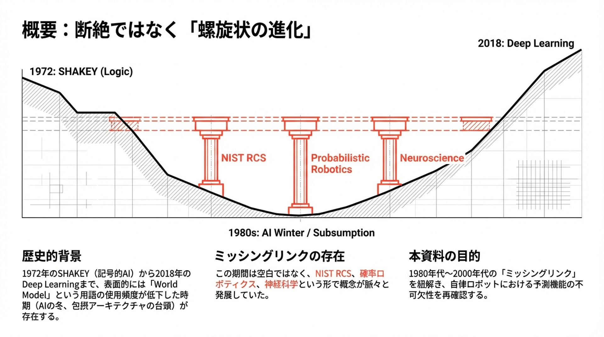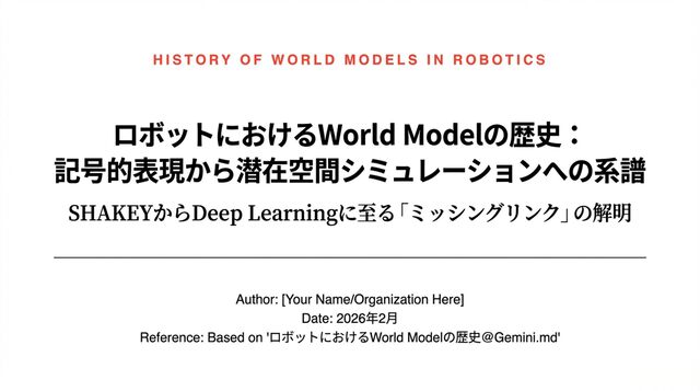 This slide deck explains the transformative impact of recent advances in generative AI and world models on robotics. Traditional robots required humans to design detailed, rule-based control systems; however, modern approaches have evolved toward technologies that enable autonomous reasoning and prediction, allowing robots to adapt to unknown environments and complex tasks.