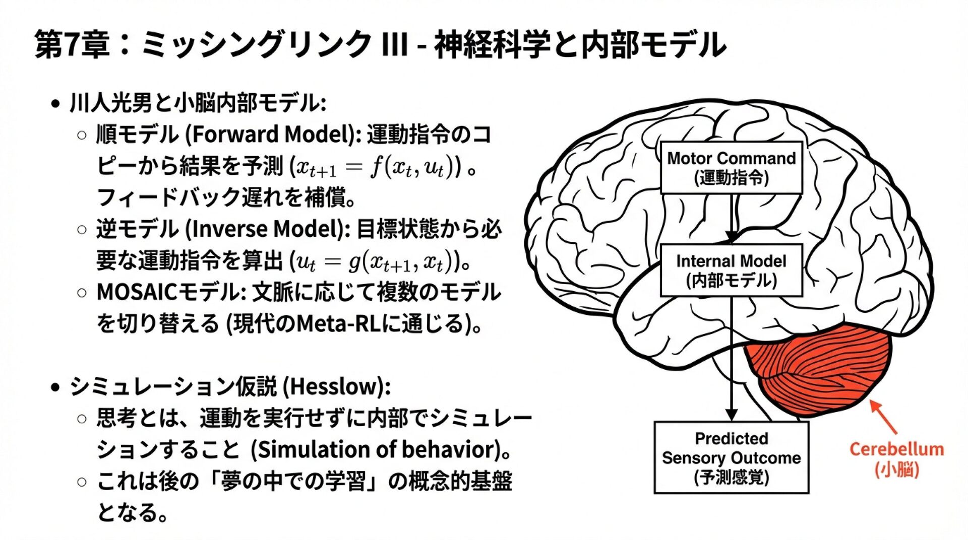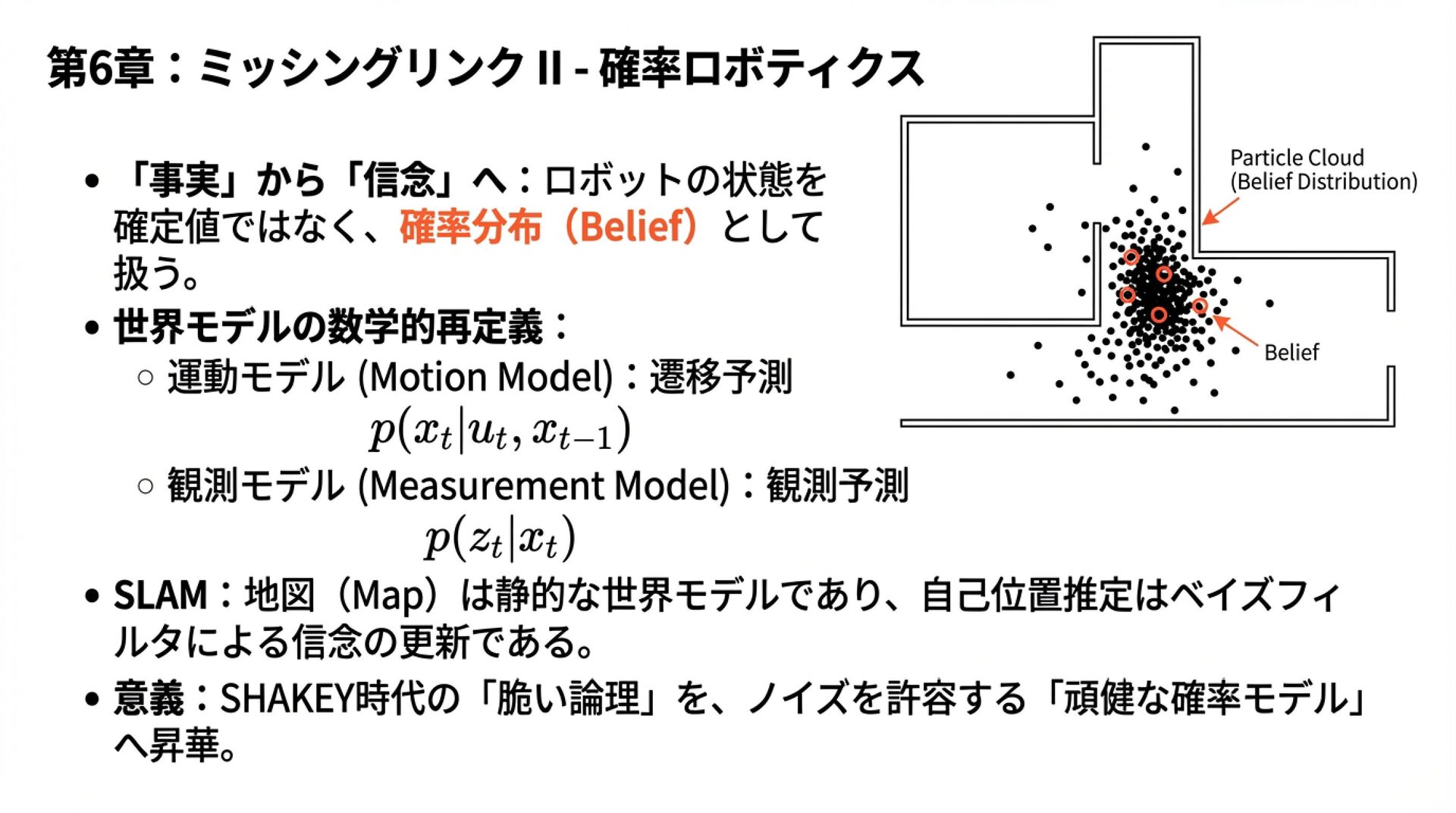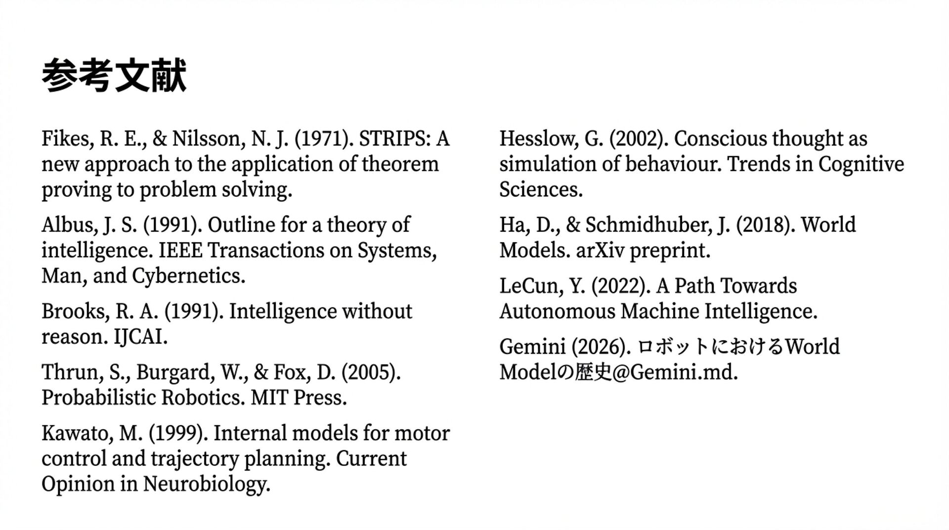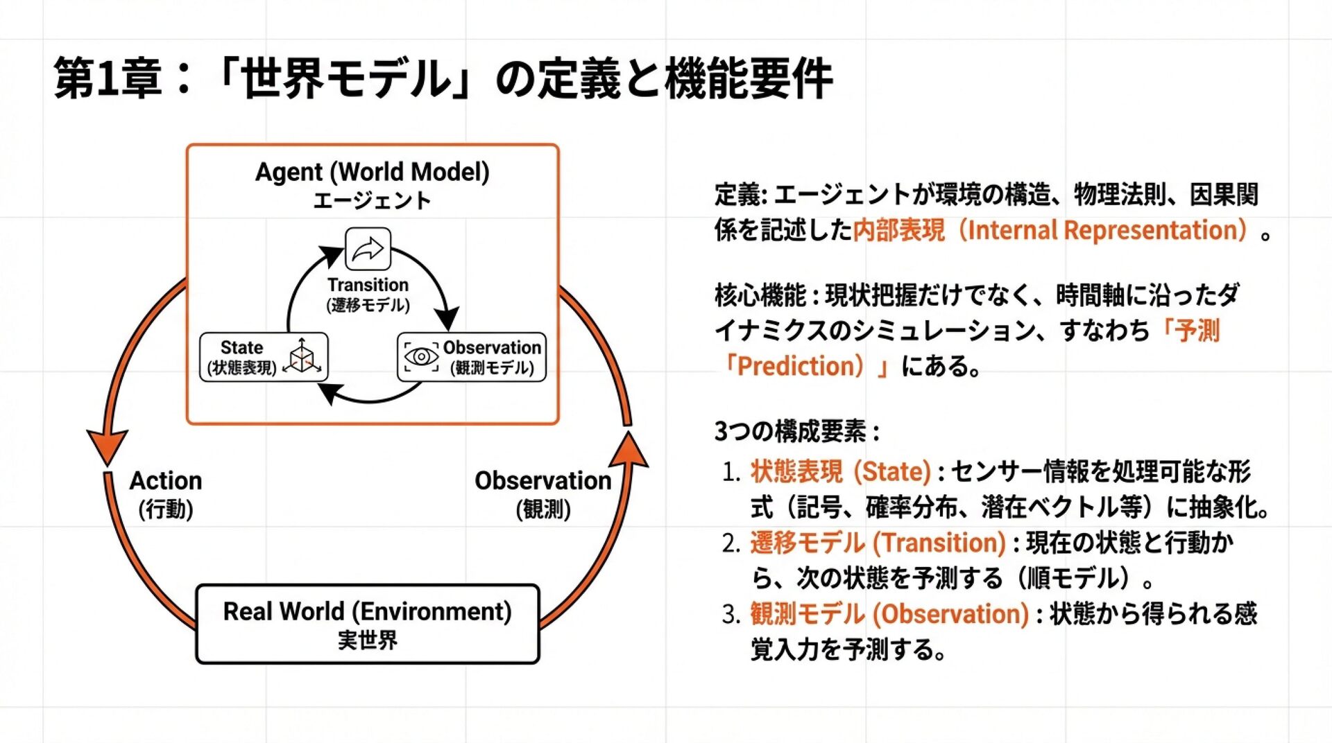 このスライドは、最新の生成AIや世界モデルがロボット工学にもたらす革新的な変化について解説しています。従来のロボットは人間が詳細なルールを設計する必要がありましたが、現在は自律的な推論や予測を通じて、未知の環境や複雑な作業に適応する技術へと進化しています。具体的には、NECの能動学習を用いた効率的な動作習得や、Google・NVIDIAが追求するフィジカルAI、そして昆虫のような階層構造を持つサブサンプション・アーキテクチャなどが紹介されています。これらの技術は、ロボットが身体性を獲得し、人間と協働・共進化する社会の実現を目指しています。AIが物理的な身体を通じて実世界を理解することで、製造や物流、日常生活における自動化の可能性が大きく広がっています。