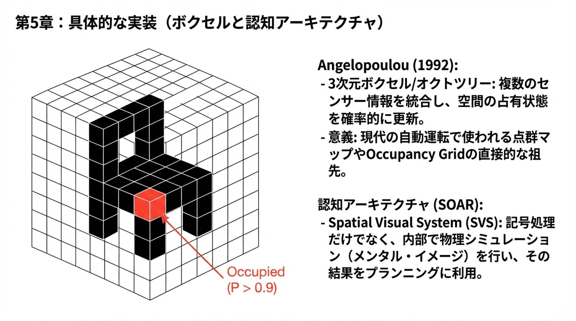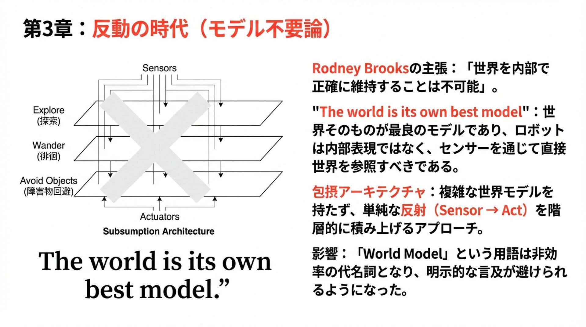 Specifically, the slides introduce efficient skill acquisition using active learning, as exemplified by NEC’s research, as well as the concept of Physical AI pursued by Google and NVIDIA. In addition, architectures inspired by biological systems—such as subsumption architectures with insect-like hierarchical structures—are discussed. These technologies aim to enable robots to acquire embodiment and to support a society in which humans and robots collaborate and co-evolve.