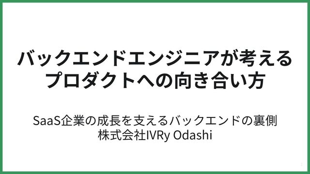 バックエンドエンジニアが考える プロダクトへの向き合い⽅ SaaS企業の成⻑を⽀えるバックエンドの裏側 株式会社IVRy Odashi 1