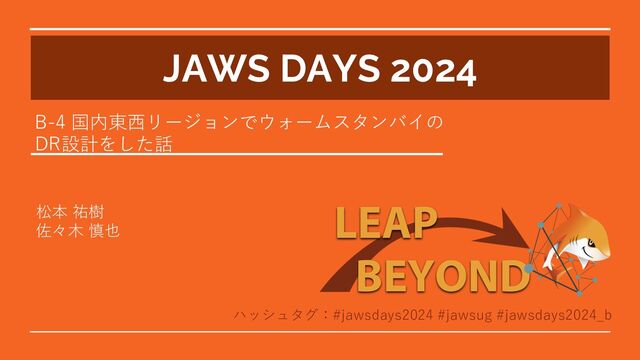 Amazon DynamoDB AWS Lambda Amazon API Gateway Internet Corporate data center Amazon SQS AWS Lambda Internet Amazon DynamoDB AWS CodePipeline AWS CodeCommit AWS CodeBuild Amazon Cognito ACM Amazon Route 53 AWS Backup SaaS IAM Corporate data center Server Corporate data center Server Corporate data center Server 外部システムごとに ClientCredentialsGrantで認証 Route53の エイリアスレコードを ⼤阪リージョンの API Gatewayに切り替える Cloudformationテンプレートを CodeCommitに保管し、CodeBuild とCodePipelineでデプロイする