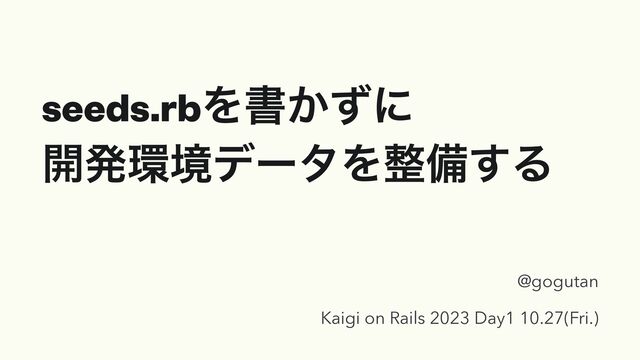 task :generate_csv_from_db => :environment do |_task, args| def generate_csv(model_name) model = model_name.constantize results = model.pluck(*model.column_names) return 0 if results.size.zero? data = CSV.generate do |csv| csv << model.column_names results.each { |result| csv << result } end file_path = "db/fixtures/bulk_insert/#{model_name}.csv" File.open(file_path, 'w') do |file| file.write(data) p "Finished generating #{file_path}(#{results.size} rows) from DB!” end return results.size end total_count = 0 ActiveRecord::Base.connection .tables .reject{ |t| t.in? %w(schema_migrations ar_internal_metadata) } .each { |t| total_count += generate_csv(t.classify) } p "Total row count: #{total_count}" end end CSVʹશϨίʔυग़ྗ id,title,author,created_at,updated_at 1,ֶͷ͢͢Ί,་٢,2021/02/01 12:33,2021/02/01 12:33 2,ҏ౾ͷགྷΓࢠ,߁,2021/02/01 12:33,2021/02/01 12:33 …… ←