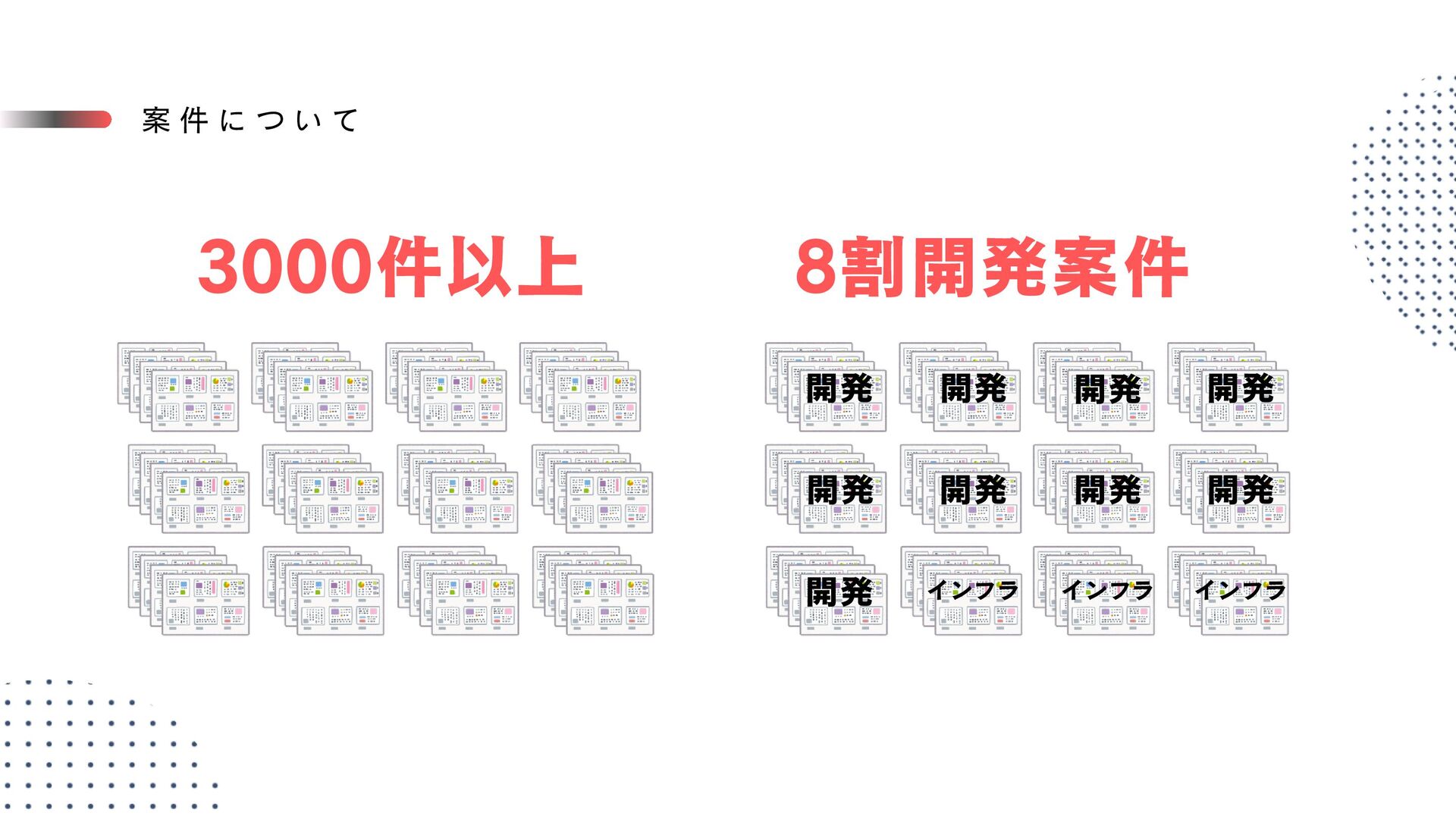 案 件 に つ い て 3000件以上 8割開発案件 開発 開発
