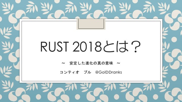 RUST 2018とは? 〜 安定した進化の真の意味 〜 コンティオ プル @GolDDranks