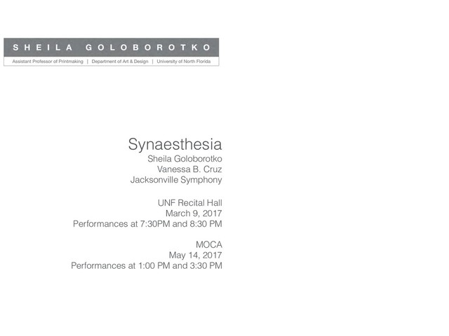 Synaesthesia Sheila Goloborotko Vanessa B. Cruz Jacksonville Symphony UNF Recital