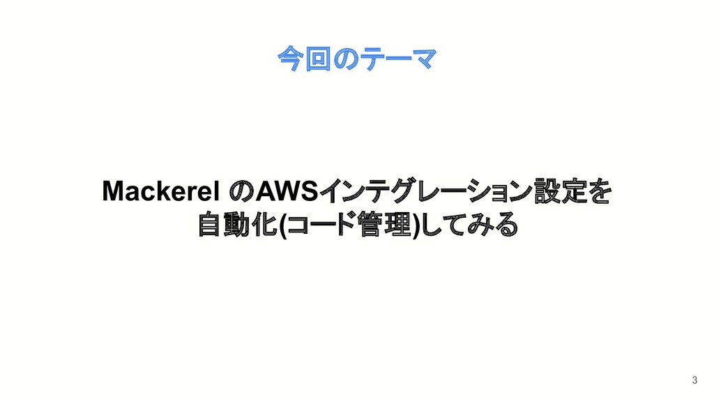 Mackerel のAWSインテグレーション設定を 自動化(コード管理)してみる 3 今回のテーマ