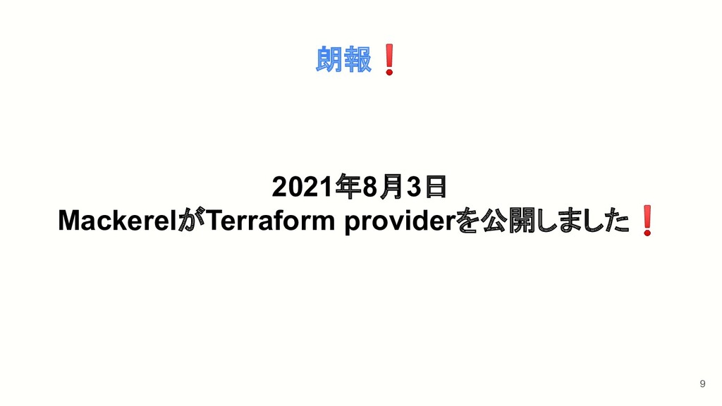 9 2021年8月3日 MackerelがTerraform providerを公開しました❗ 朗報❗