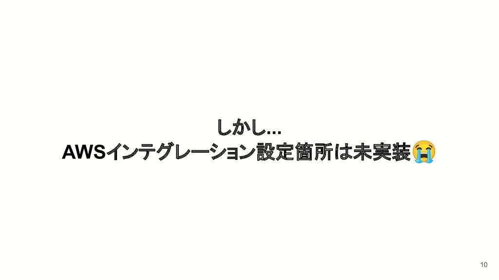10 しかし... AWSインテグレーション設定箇所は未実装😭
