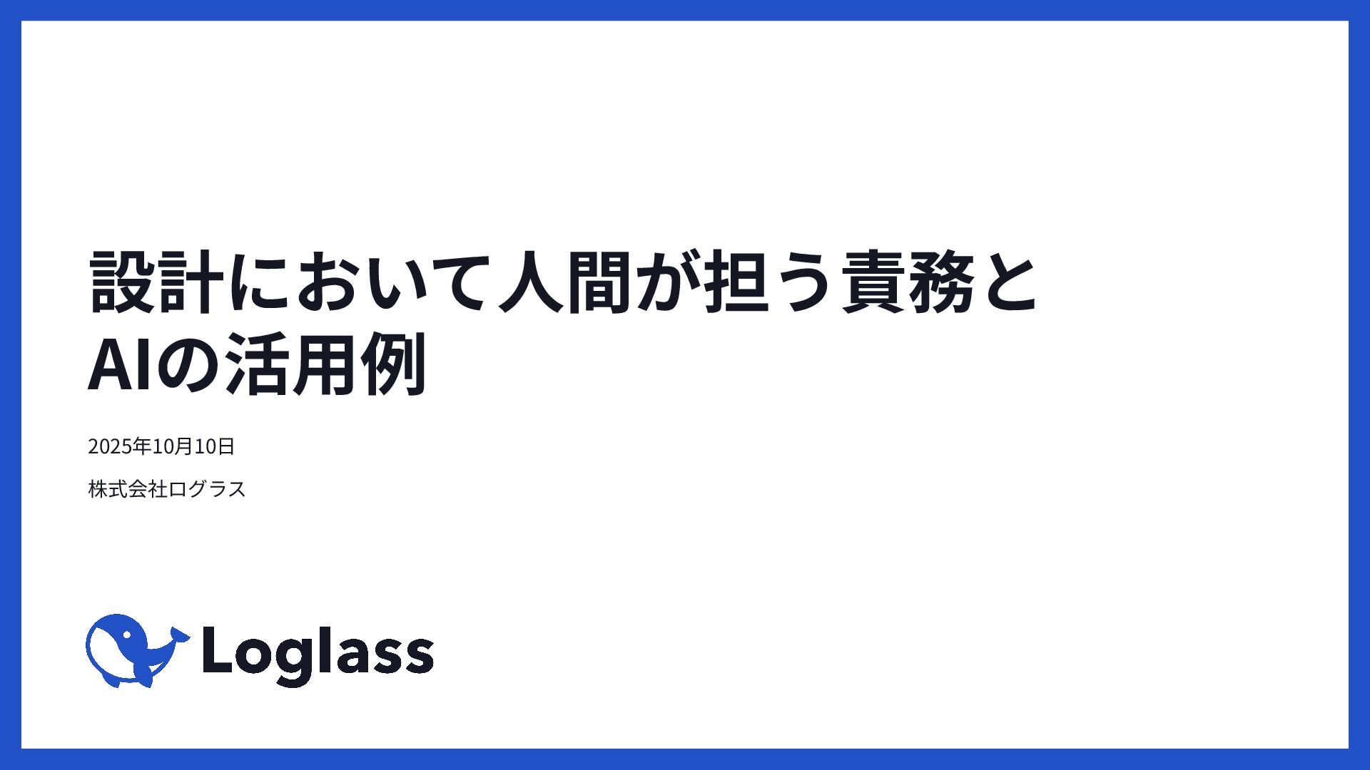 設計において⼈間が担う責務と AIの活⽤例 2025年10⽉10⽇ 株式会社ログラス 1