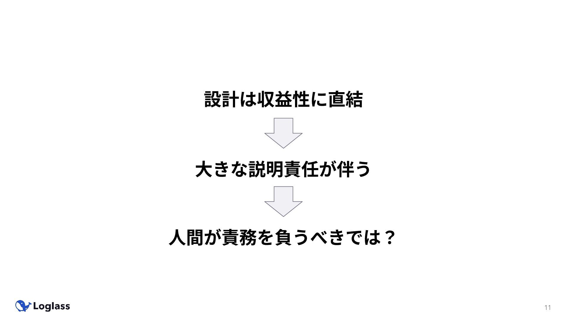 11 設計は収益性に直結 ⼤きな説明責任が伴う ⼈間が責務を負うべきでは?