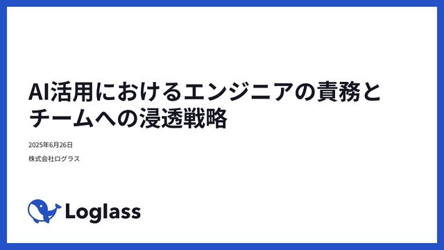 AI活⽤におけるエンジニアの責務と チームへの浸透戦略 2025年6⽉26⽇ 株式会社ログラス 1