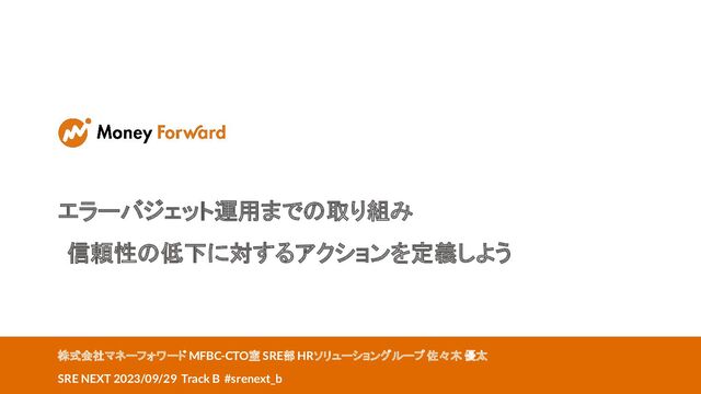 エラーバジェット運用までの取り組み 信頼性の低下に対するアクションを定義しよう 株式会社マネーフォワード MFBC-CTO室 SRE部 HRソリューショングループ 佐々木 優太 SRE NEXT