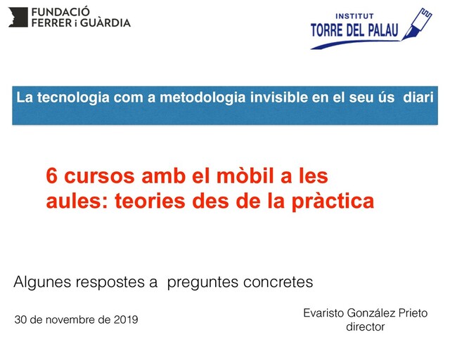 de la pràctica La tecnologia com a metodologia invisible en el seu ús diari 30 de novembre de 2019 Evaristo González Prieto director Algunes respostes a preguntes concretes