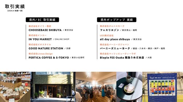 גࣜձࣾͦ͝͏ɾ ౦ژौ୩ גࣜձࣾ-JOOBT%FTJHO 1&35*$"$0''&&450,:0 ౦ژখഅொ ݝ֎ϙοϓΞοϓ࣮ גࣜձࣾόʔχʔζδϟύϯ όʔχʔζχϡʔϤʔΫ ۜ࠲ɾຊɾԣɾਆށɾԬ ϑΣεϦΤκϯ ౦ژ੨ࢁɾԬ גࣜձࣾΦϜχεϞʔΫ BMMEBZQMBDFTIJCVZB ౦ژौ୩ 6%4גࣜձࣾ גࣜձࣾϚογϡϏϡʔςΟʔϥϘ #JPQMF'&40TBLBࡕٸ͏Ίͩຊళ େࡕ