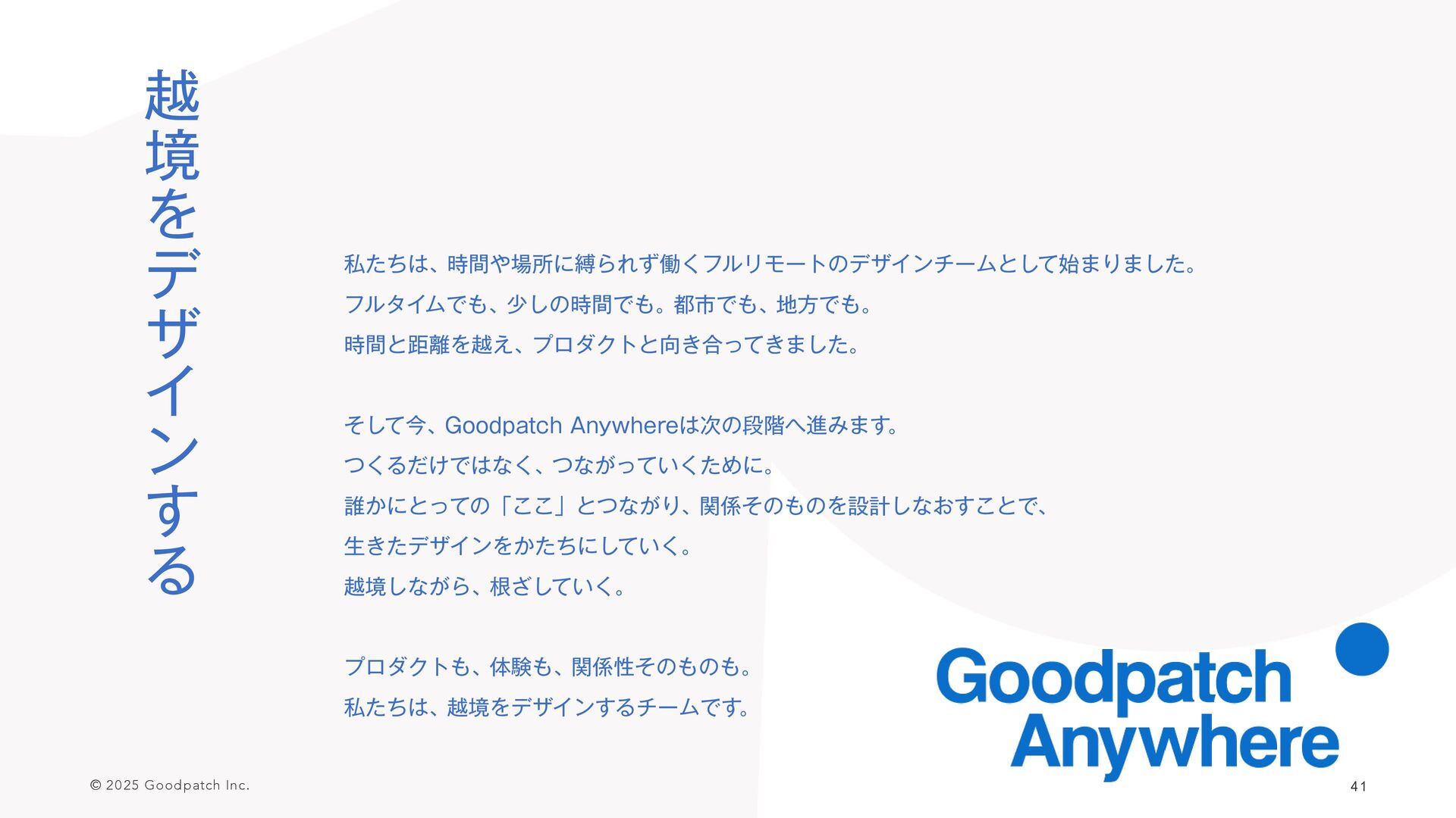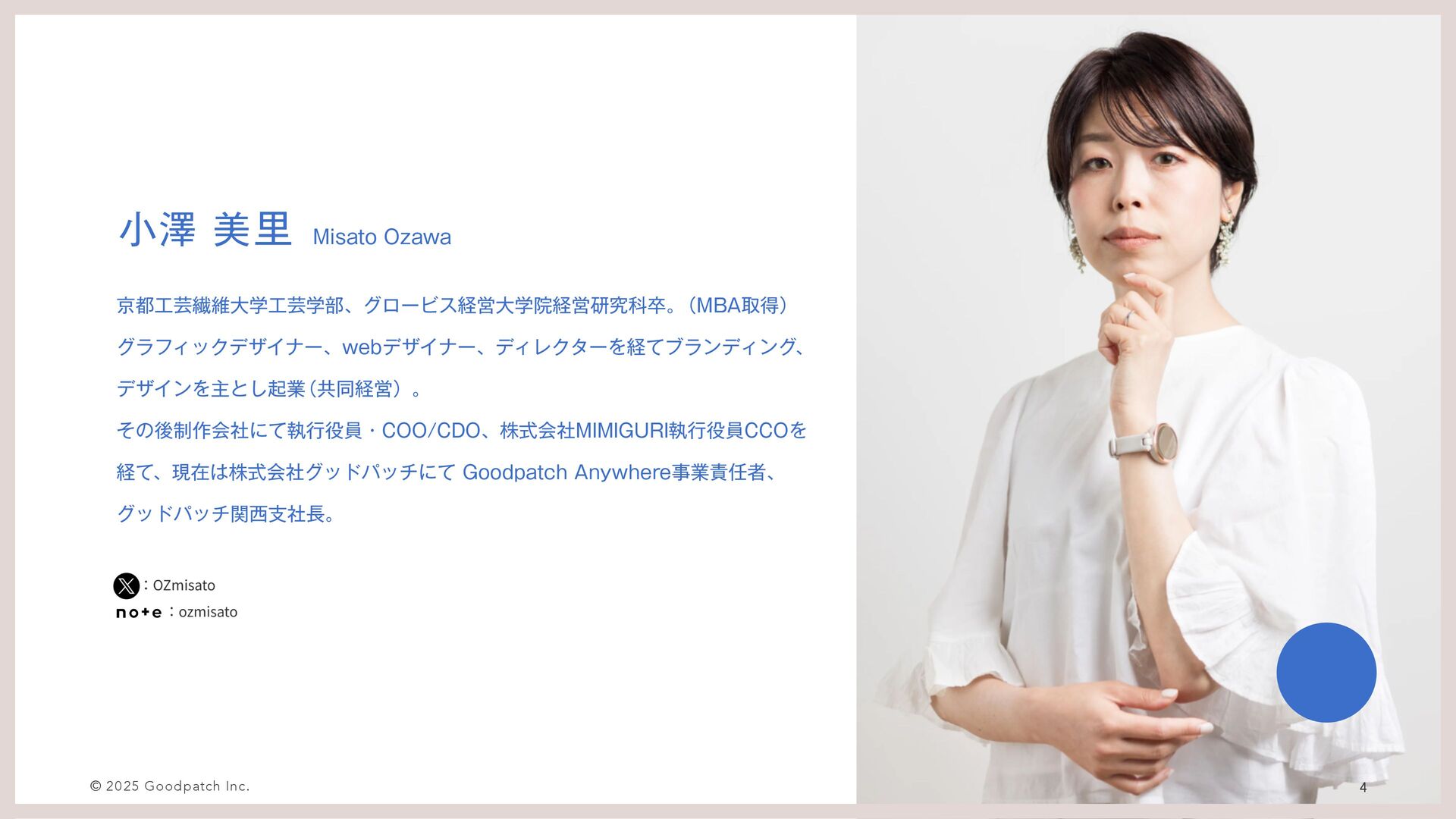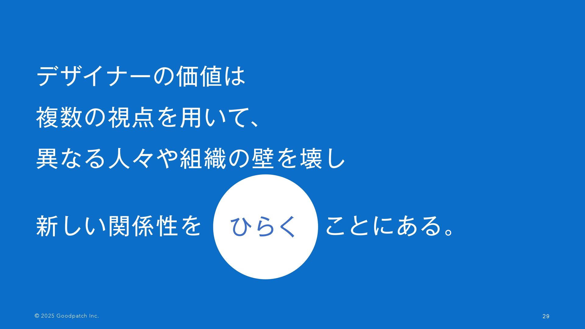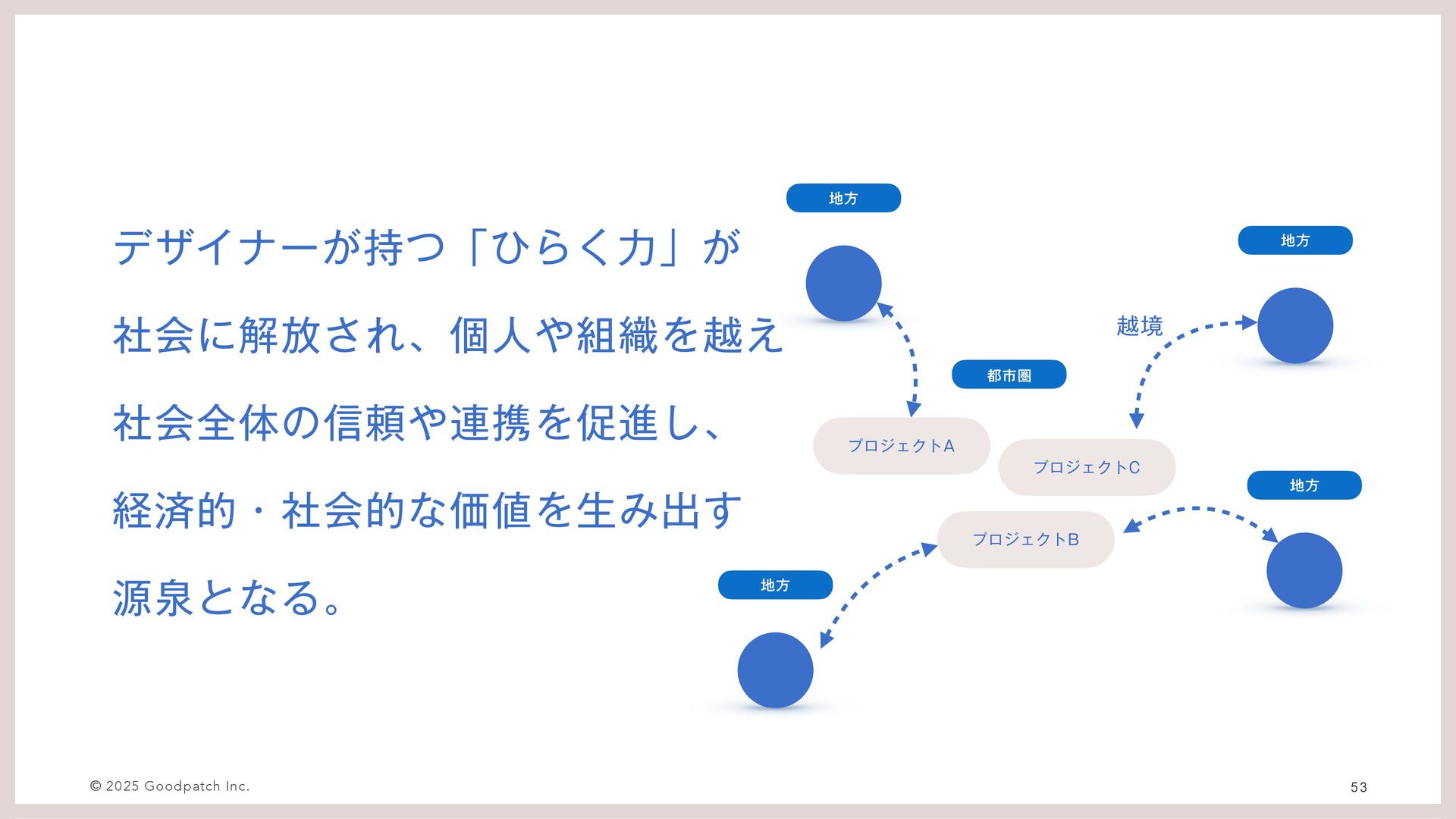 このセッションでは、デザイナーが専門性を活かし、企業や地域の枠を超えて多様な人々と協働することで、新たな価値を創造し、社会課題の解決に貢献する未来について、皆さんと一緒に考えたいと思います。