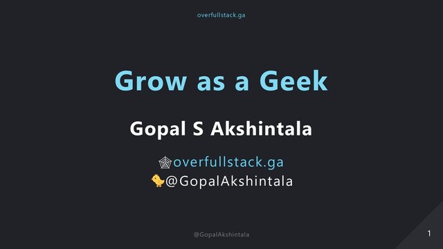 Grow as a Geek Gopal S Akshintala overfullstack.ga @GopalAkshintala 1