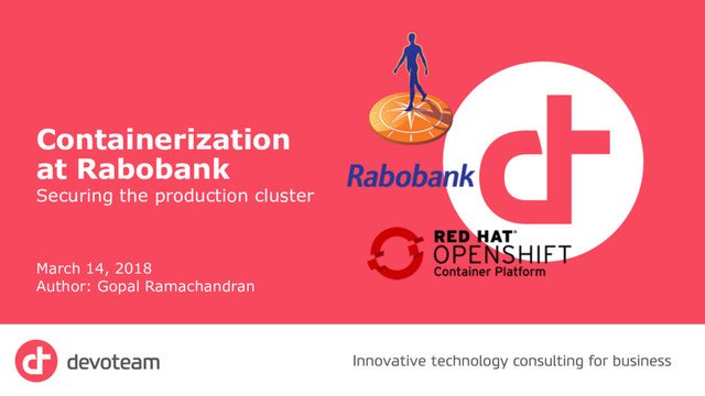 version 3.6 • Not just secrets, any Kubernetes resource (like configmaps) maybe stored encrypted. • Requires etcd schema v3. • Simple to implement (using an encryption_config.yaml file). • Migration of existing resources possible via oc adm command.