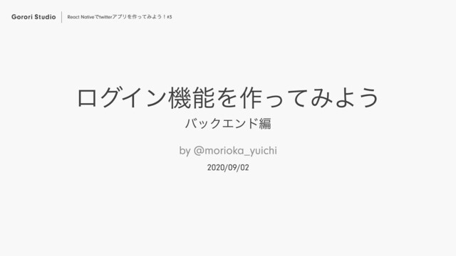 https://studio.gorori.jp End ログイン機能を作ってみよう バックエンド編 React Native で twitter アプリを作ってみよう! #3