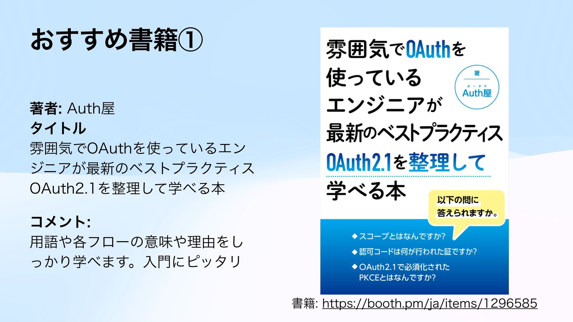 ஶऀ"VUI λΠτϧ งғؾͰ0"VUIΛ͍ͬͯΔΤϯ δχΞ͕࠷৽ͷϕετϓϥΫςΟε 0"VUIΛཧֶͯ͠Δຊ ίϝϯτ ༻ޠ֤ϑϩʔͷҙຯཧ༝Λ͠ ͔ͬΓֶ·͢ɻೖʹϐολϦ ͓͢͢Ίॻ੶ᶃ ॻ੶IUUQTCPPUIQNKBJUFNT