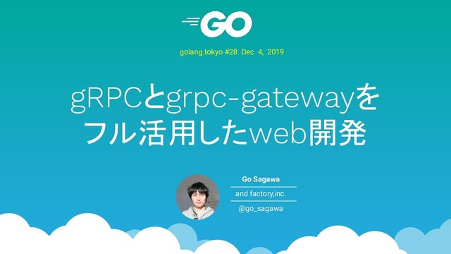 gRPCとgrpc-gatewayを フル活用したweb開発 golang.tokyo #28 Dec 4, 2019 Go Sagawa and