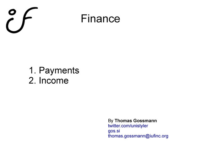 Finance 1. Payments 2. Income By Thomas Gossmann twitter.com/unistyler gos.si