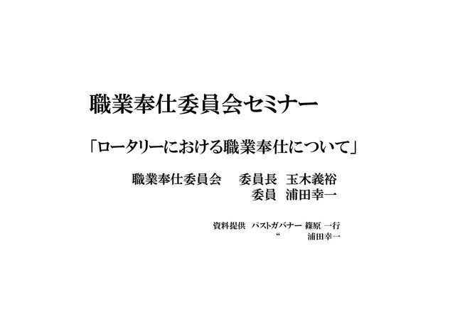 職業奉仕委員会セミナー 「ロータリーにおける職業奉仕について」 職業奉仕委員会 委員長 玉木義裕 委員 浦田幸一 資料提供 パストガバナー 篠原