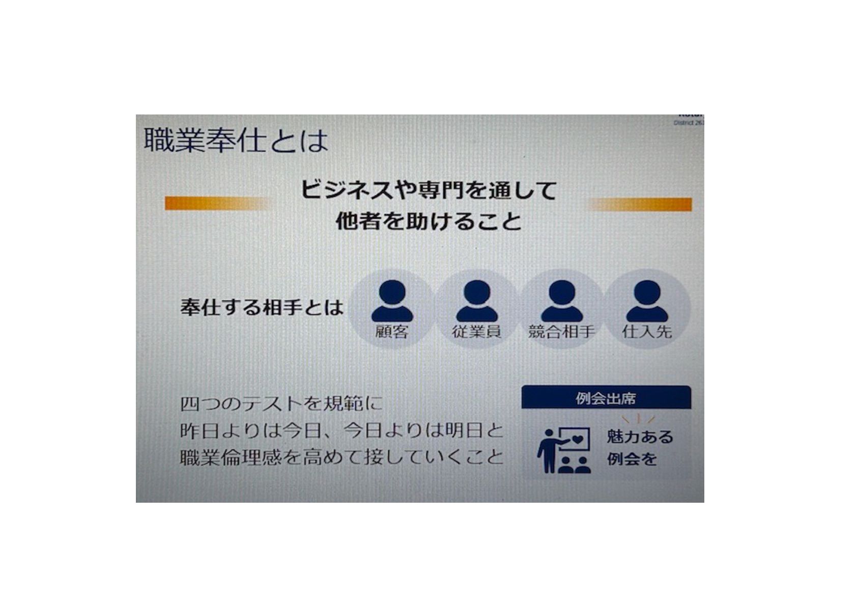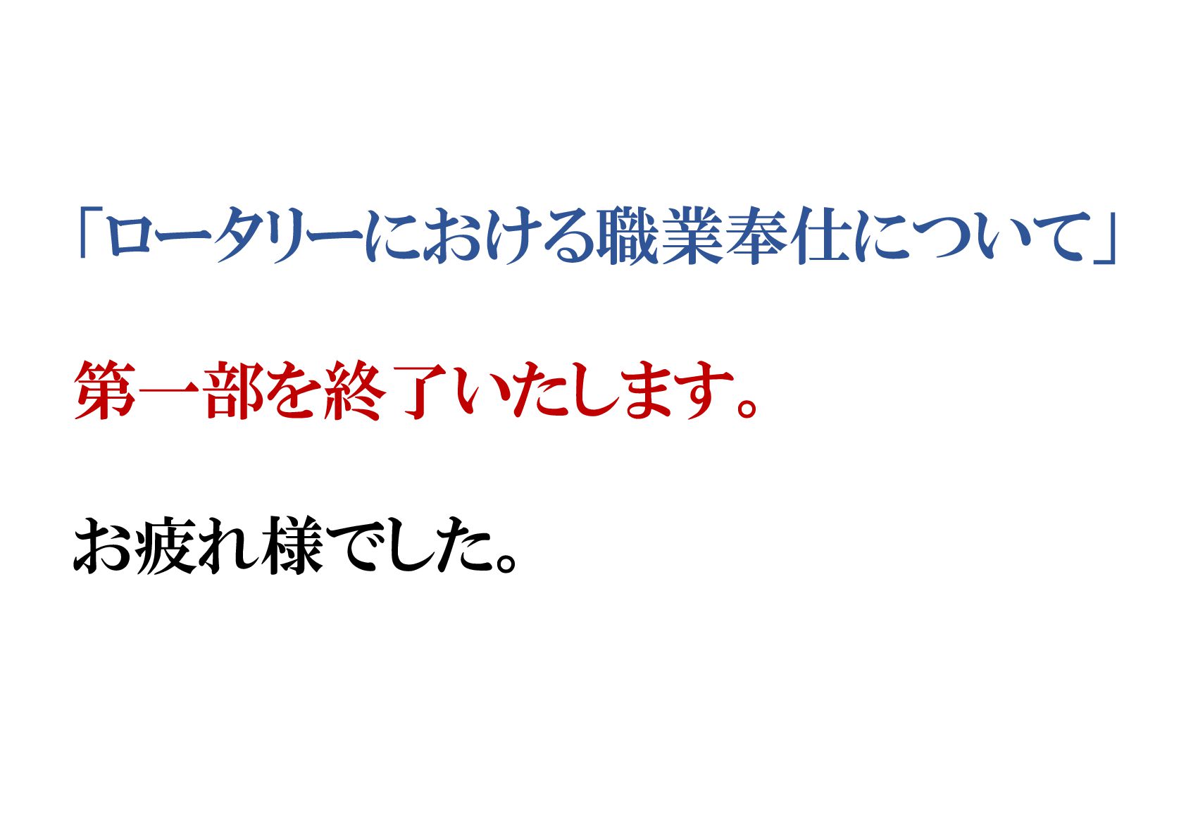 「ロータリーにおける職業奉仕について」 第一部を終了いたします。 お疲れ様でした。