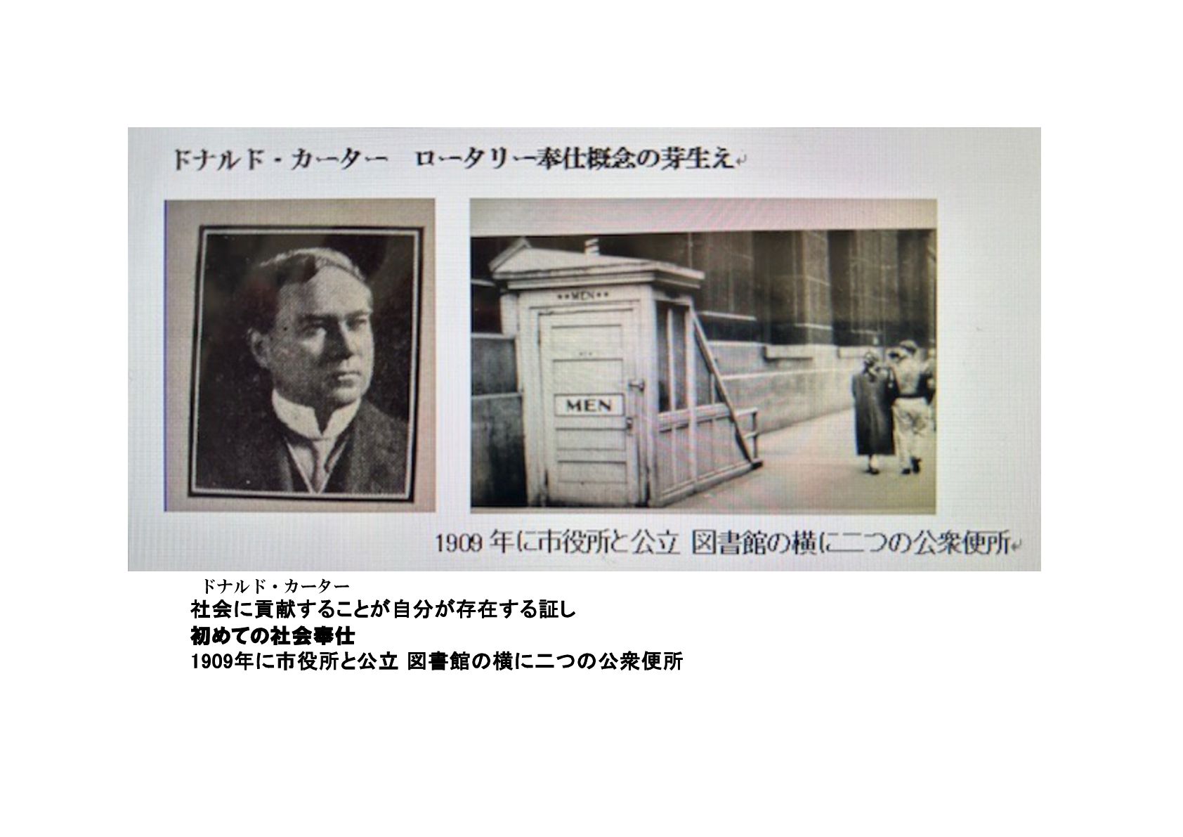 ドナルド・カーター 社会に貢献することが自分が存在する証し 初めての社会奉仕 1909年に市役所と公立 図書館の横に二つの公衆便所