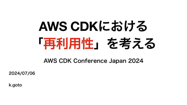 LHPUP AWS CDKʹ͓͚Δ ʮ࠶ར༻ੑʯΛߟ͑Δ "84$%,$POGFSFODF+BQBO