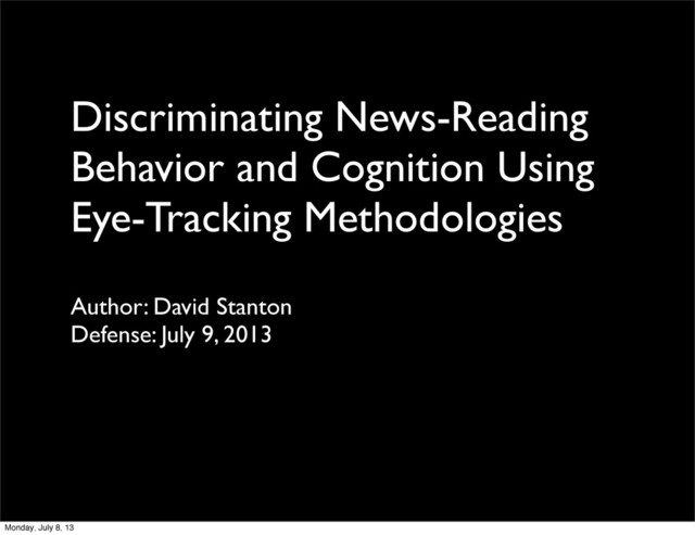 utilize smaller, discrete storytelling elements will perform better information recognition. • y = media + proto + media*proto + error • proto effect sig. (F = 7.39, df = 2, p = 0.001) • R Squared = 0.118, Adj. R Squared = 0.088 • proto means (0.432, 0.506, 0.552) • Participants exposed to ASFs had better information recognition on average. Monday, July 8, 13