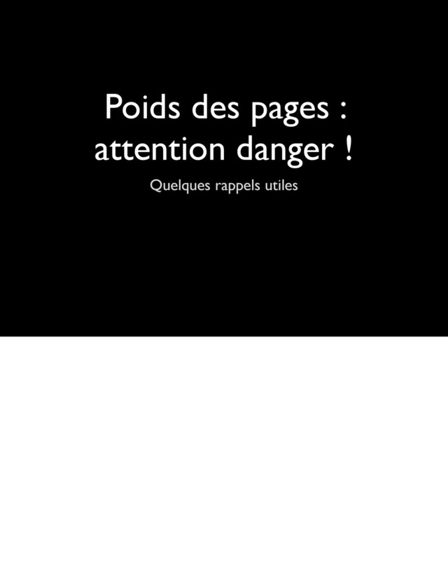 ! http://www.webperformancetoday.com/2012/10/03/what-we-learned-from-testing-the- mobile-load-times-of-200-top-retail-sites-over-3g-and-lte/ En conditions réelles, le débit 3G associé au temps de traitement des navigateurs sur mobile font qu’une page d’1 méga 5 met entre 10 et 20 secondes à se charger. Non, ce n’est pas normal...