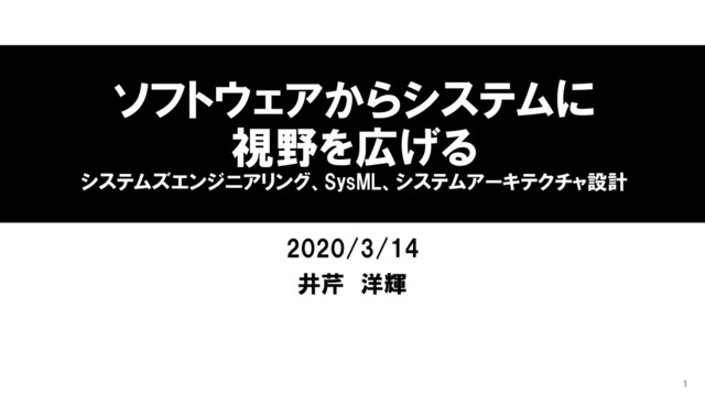 ソフトウェアからシステムに 視野を広げる システムズエンジニアリング、SysML、システムアーキテクチャ設計 2020/3/14 井芹 洋輝 1
