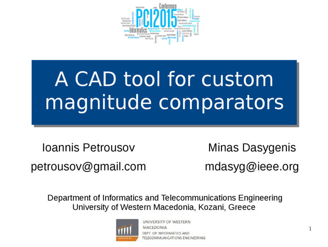 [email protected] Minas Dasygenis [email protected] Department of Informatics and Telecommunications Engineering University of Western Macedonia, Kozani, Greece