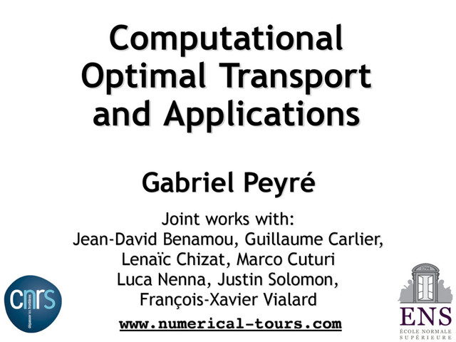 with: Jean-David Benamou, Guillaume Carlier, Lenaïc Chizat, Marco Cuturi Luca Nenna, Justin Solomon, François-Xavier Vialard É C O L E N O R M A L E S U P É R I E U R E