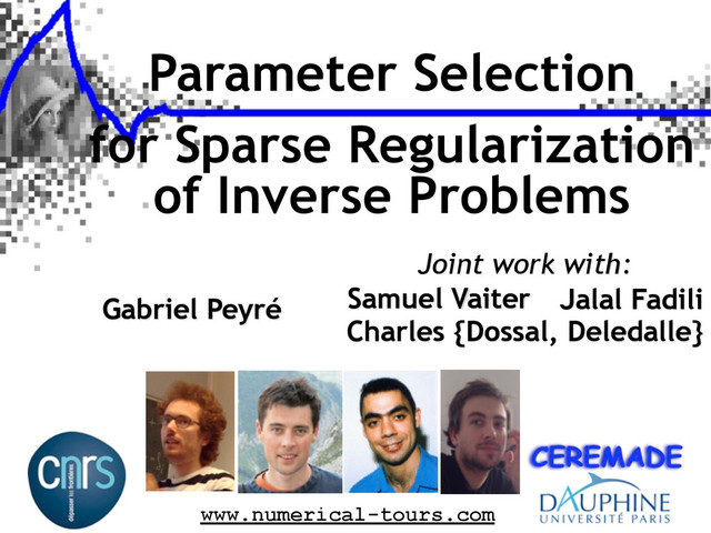 ( x (`)( y ) , y ) @x (`)( y ) + @2' ( x (`)( y ) , y ) – Compute Algorithm ⌘ (`+1) k = @1' ( x (`) , y ) ⌘ (`) k + @2' ( x (`) , y )[ zk] – For ` 6 `0, compute: gdf(`0)(y) = 1 K PK k=1 h⌘(`0) k , +zk i ! gdf (`0) approximates the gdf of y 7! x (`0) (y). ! unbiased estimate of the risk at current iteration `0. Similar approaches: [Ramani, Blu, Unser’08], [Giryes, Elad, Eldar’11] Iterative Estimators – For k = 1 , . . . , K , generate zk ⇠ N (0 , IdP ). x (`+1)( y ) = ' ( x (`)( y ) , y ) `!+1 ! x ( y )